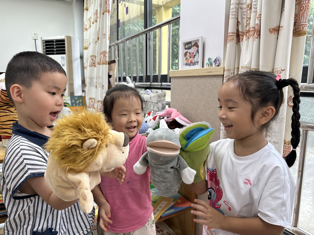 各班的语言区也成为了孩子们的“趣玩乐园”。孩子们在游戏中自由交流、大胆表达,玩中学、学中玩。