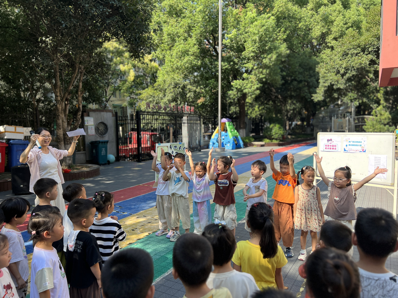 大班的孩子们化身推普小使者,用清晰流利的普通话向全园发出倡议。
