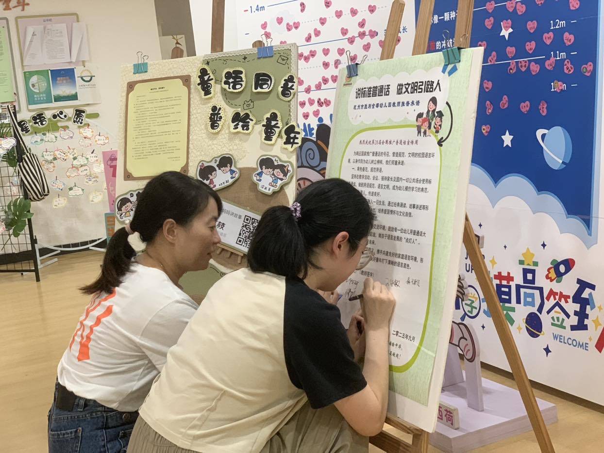 幼儿园全体教师率先行动起来,一支支“啄木鸟”小分队穿梭在园内的各个角落,对公共环境、主题墙、宣传标语乃至办公文件进行了细致的“找茬纠错”,以实际行动守护语言文字的规范化。